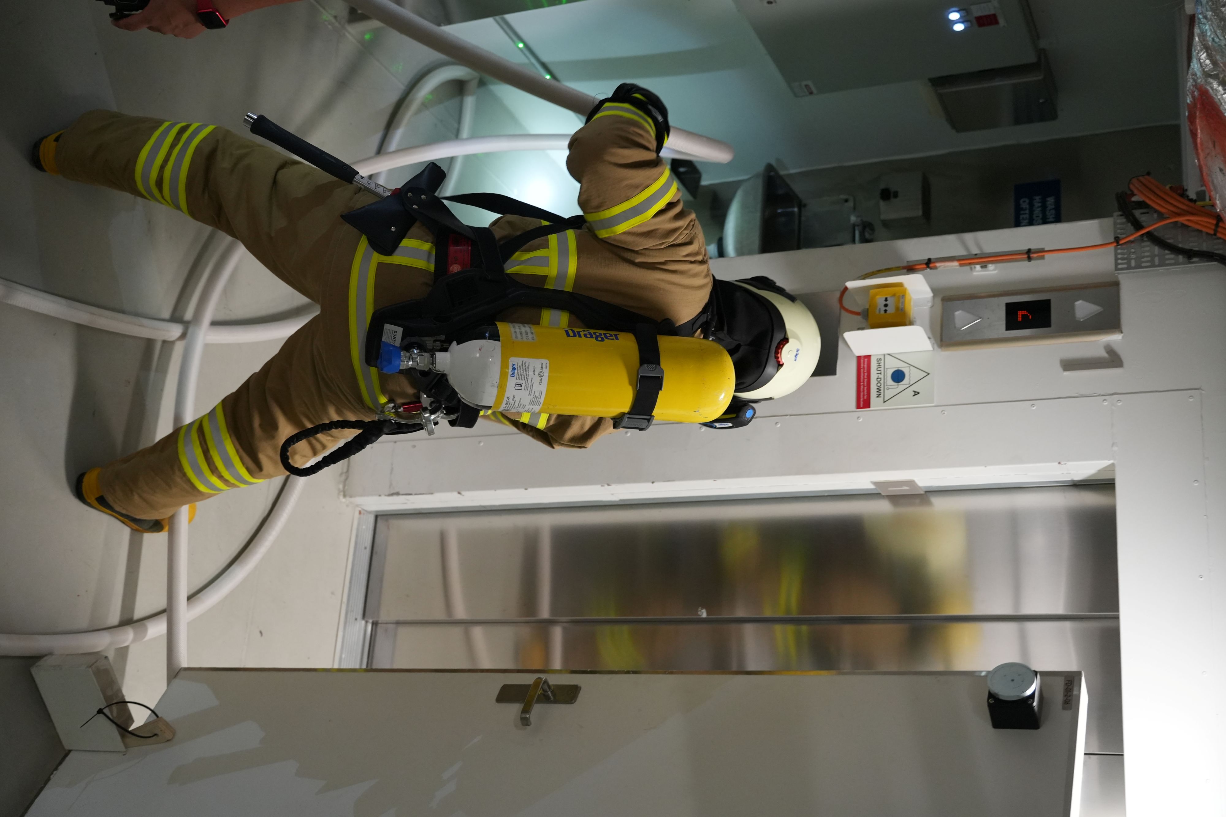 El supòsit de l’exercici ha estat un incendi en la zona de bugaderia del vaixell, amb una simulació de dos ferits, dels quals un hauria de ser rescatat mitjançant una extracció vertical