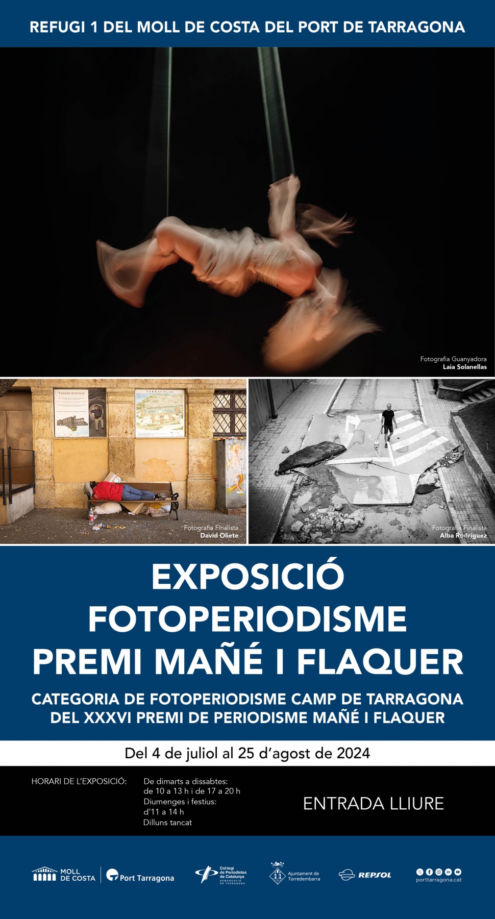 Produïda pel Port de Tarragona, la mostra aplega 37 imatges vinculades informativament al Camp de Tarragona i signades pels fotoperiodistes Alba Mariné, Alba Rodríguez, Anna López Figueras, Ariadna Escoda, Àngel Ullate, Carles Esporrín, David Oliete, Jordi Borràs, Laia Solanellas i Oriol Lleonart. En la categoria de Fotoperiodisme, la imatge guanyadora de l’edició 2023 va ser “Fluint amb el Trapezi”, de Laia Solanellas, i les finalistes van ser “Sense llar”, de David Oliete, i “Fragments”, d’Alba Rodríguez.