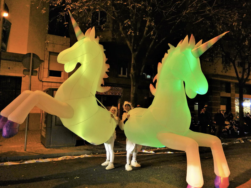Aquests personatges de més de tres metres d’alt, són inflables de color blanc, i porten llum led multicolor interior, augmentant l’efecte de fantasia.