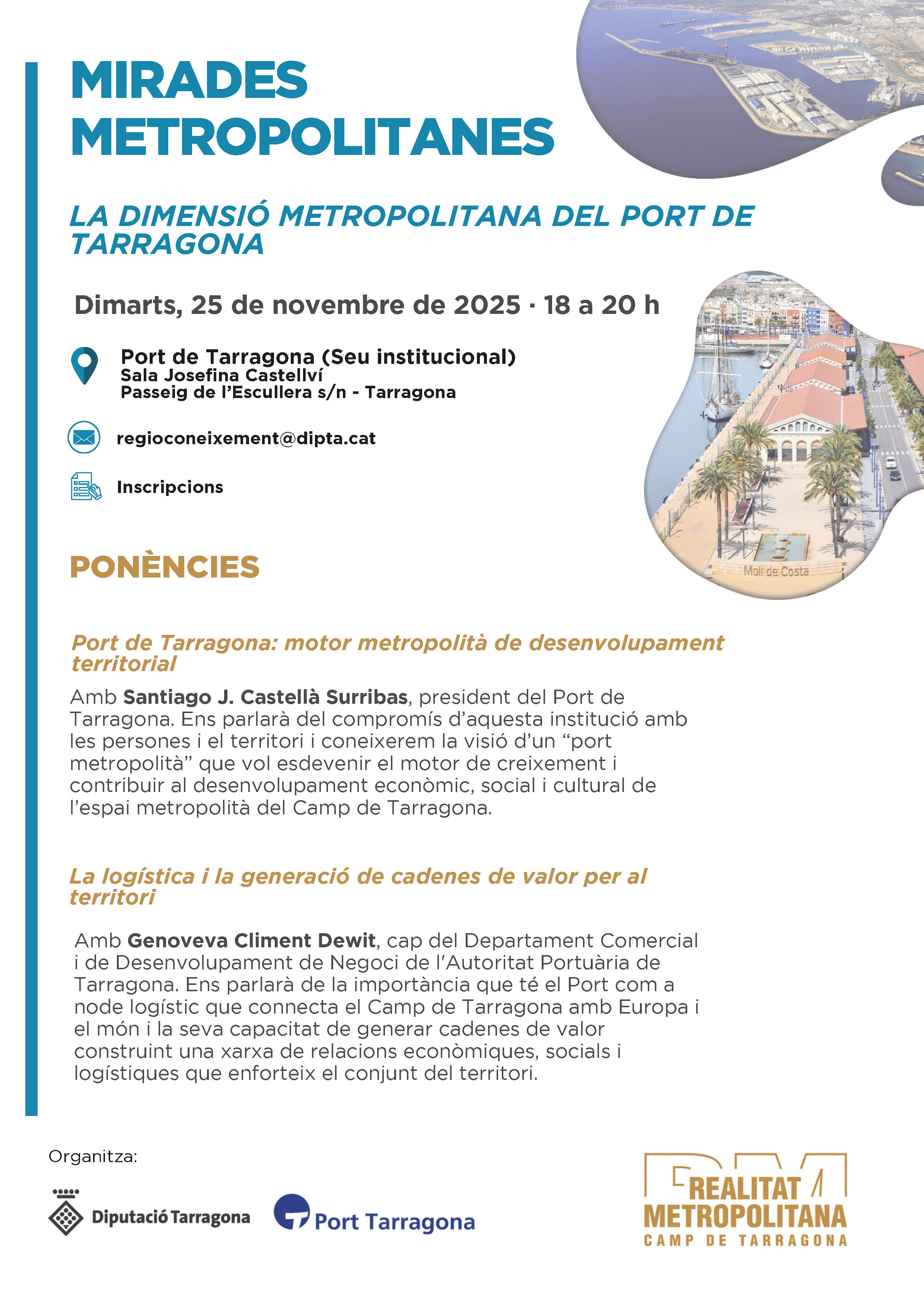 Com genera valor el Port per al territori? En parlem a la nova sessió de Mirades Metropolitanes: “La dimensió metropolitana del Port de Tarragona”.