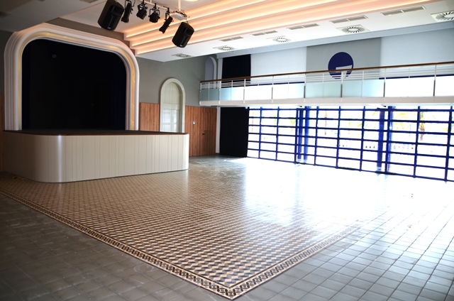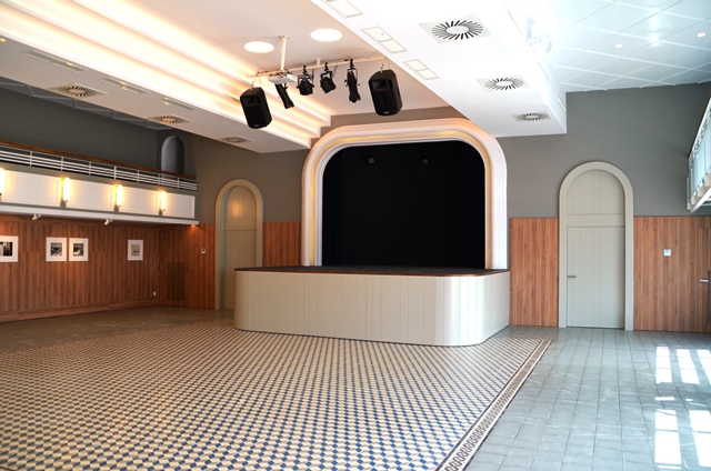 -Primera planta: gran sala con pequeño teatro para actividades culturales (capacidad 146 personas), con conexión a la terraza.
